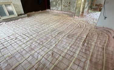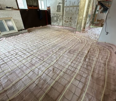 Installation complète d'un système de plancher chauffant à l'eau chaude.